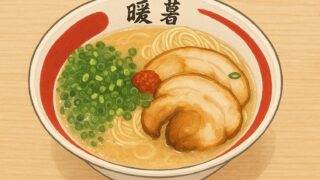 福岡・二日市にある人気ラーメン店「暖暮」。こってりしすぎず、さっぱりしすぎない絶妙なスープと細麺が魅力!替え玉まで楽しめるお気に入りの一杯をご紹介します。